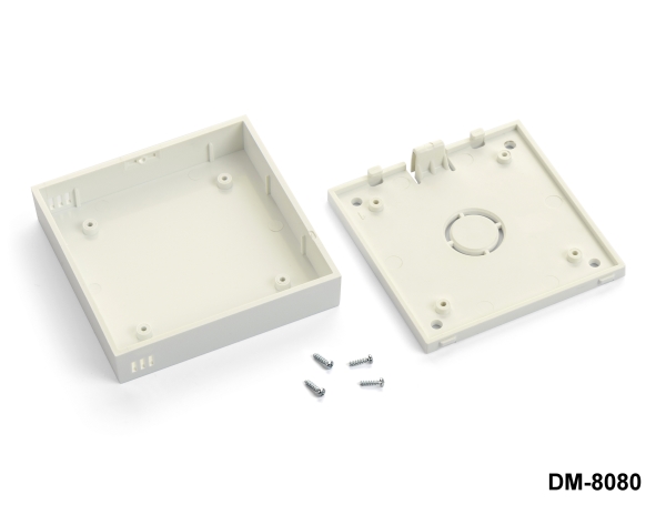 The DM-8080 Wall Mounted Box is a versatile and reliable solution for housing electronic devices made of durable ABS-UL94-VO material with dimensions of 80 mm x 80 mm x 16 mm.
