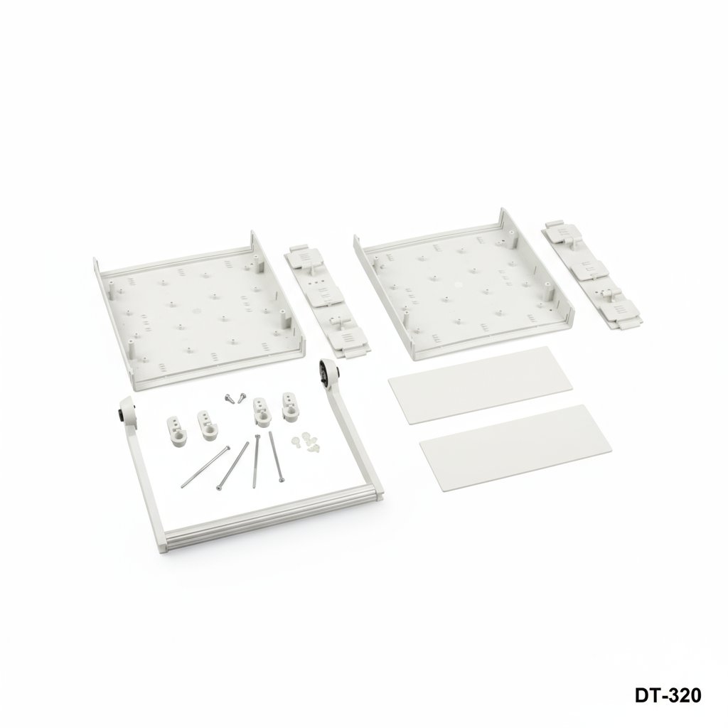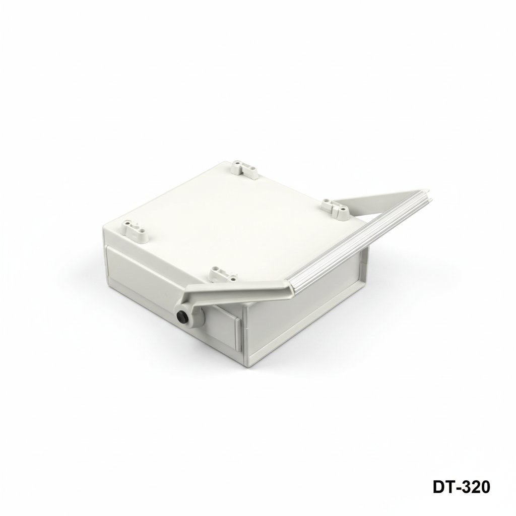 The DT-320 Plastic Desktop Enclosure is a sleek and professional option for electronic applications made of ABS-UL94-HB material and sloped front panel.
