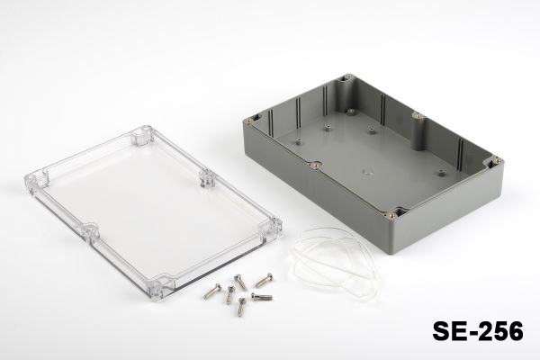 8698651112344SE-256 is a heavy duty enclosure with IP67 certificate. Waterproof and dustproof features allow usage in outdoor applications. Customization by CNC machining, UV printing and laser marking is available for this product. The product is produced with ABS material. Clear lid with PC material is an available option.