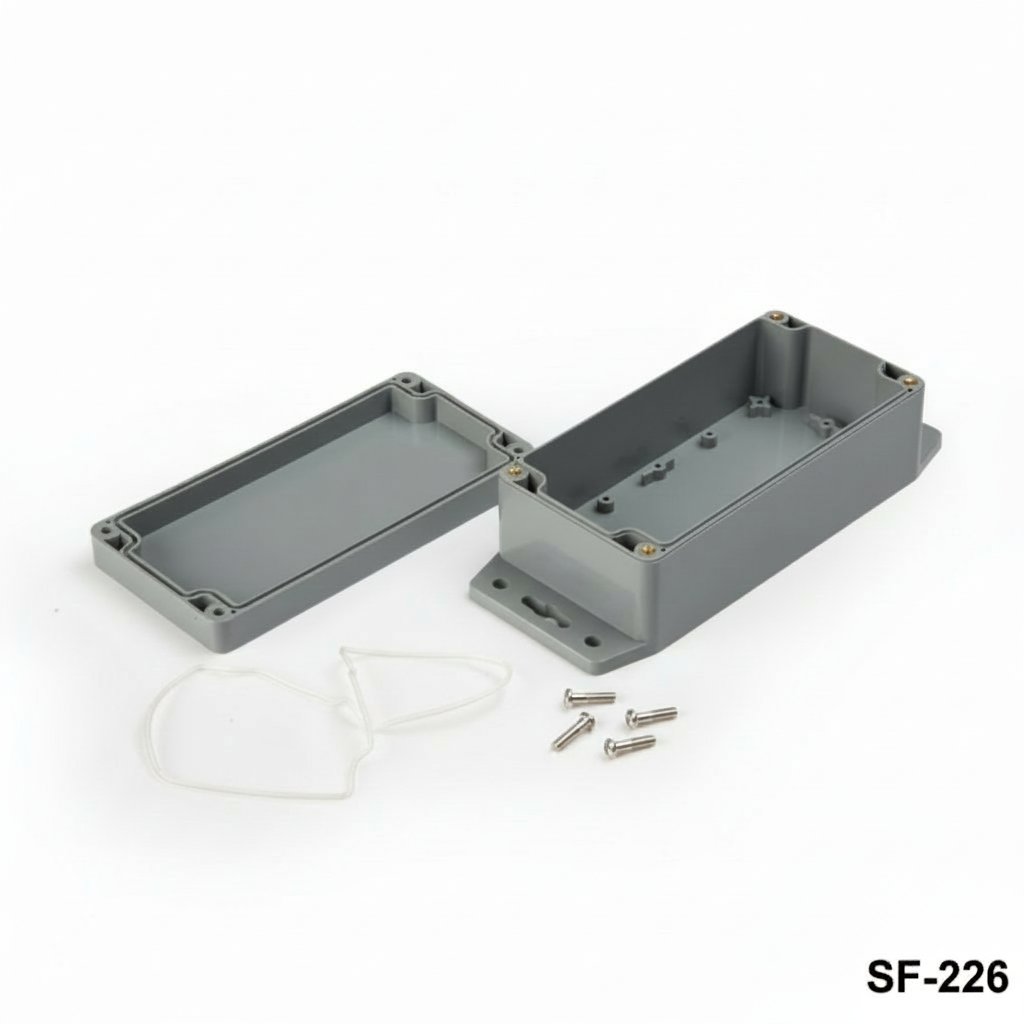 Flanges ease mounting on the surfaces. It is an ideal choice for embedded systems, transmitters, barometers, gas and humidity sensors, temperature control and measurement applications that require a high level of protection. For outdoor applications, production is also possible with ASA material resistant to sun exposure.