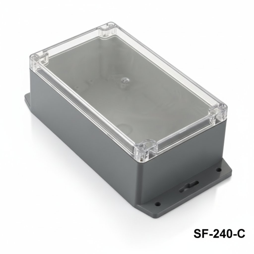 Flanges facilitate mounting on surfaces. It is an ideal choice for embedded systems, transmitters, barometers, gas and humidity sensors, temperature control and measurement applications that require a high level of protection. For outdoor applications, production with ASA material resistant to sun exposure is also possible.