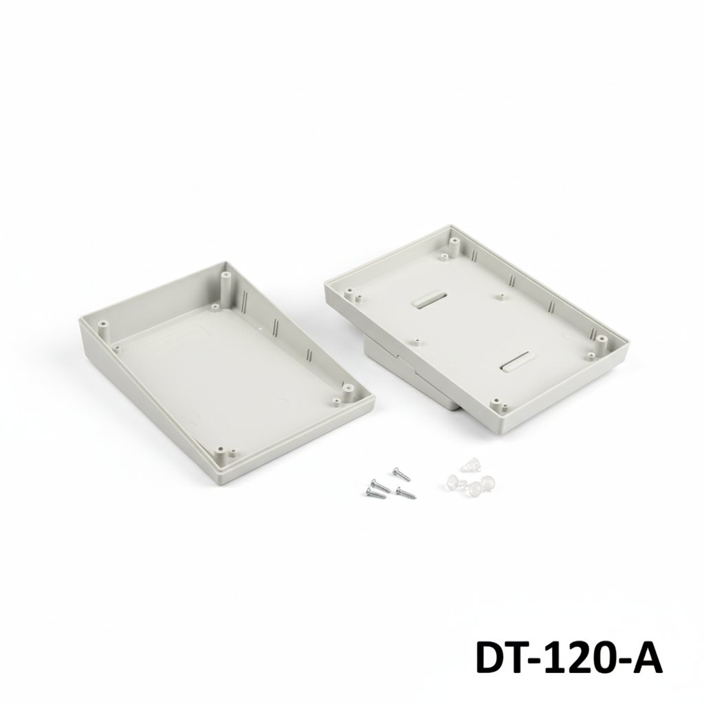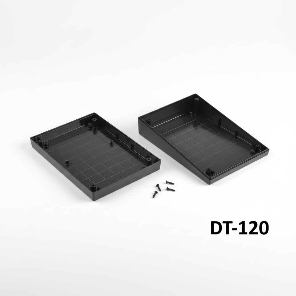 Корпусът DT-120 Sloped Desktop Enclosure е елегантен и професионален вариант за електронни приложения, изработен от материал ABS-UL94-HB и наклонен преден панел.