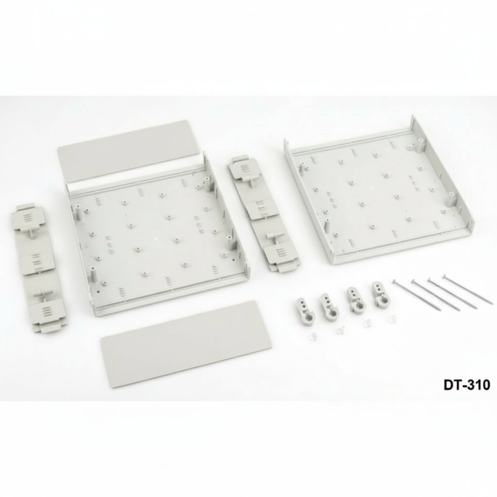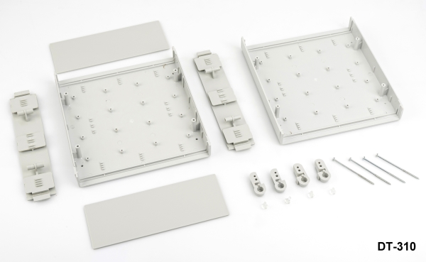 Пластмасовият корпус за настолни компютри DT-320 е елегантен и професионален вариант за електронни приложения, изработен от материал ABS-UL94-HB и наклонен преден панел.