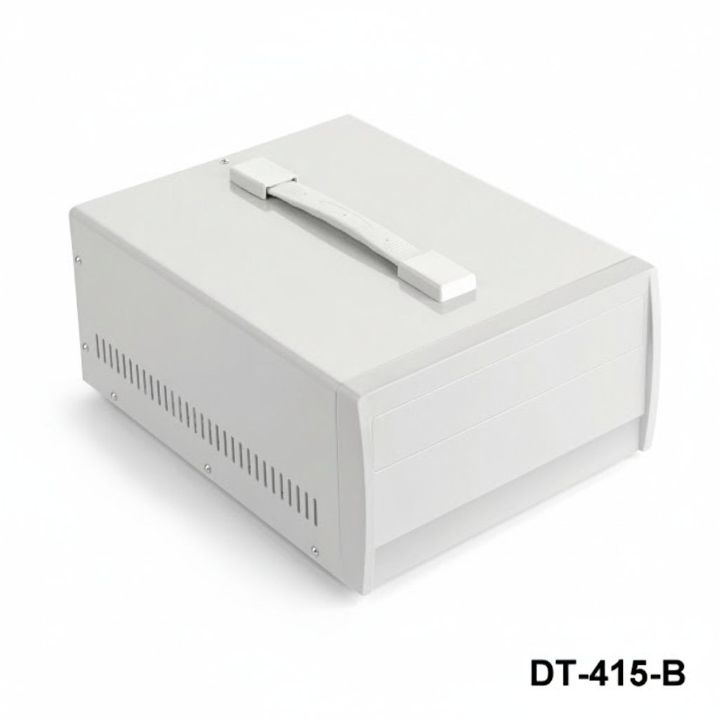 С размери 261 mm x 337 mm x 152 mm, DT-415 е компактен, но здрав. Светлосивият цвят осигурява елегантен и професионален външен вид. Комбинацията от използваните материали гарантира, че той е устойчив на удари и на топлина, което го прави подходящ за използване в различни среди. Листовият метал осигурява и допълнителни екраниращи свойства за чувствителните електронни компоненти.