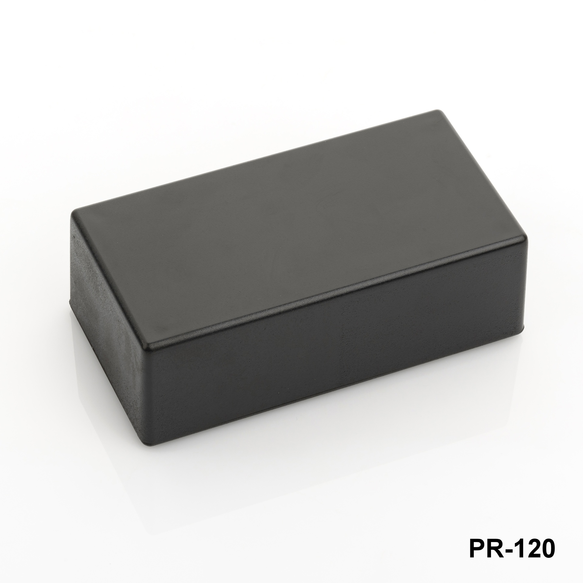 С размери 63 mm x 130 mm x 44 mm, PR-120 е компактен, но достатъчно просторен, за да побере различни електронни компоненти. Елегантният му черен цвят го прави подходящ за широк спектър от приложения - от производители на захранващи устройства до проекти за автоматизация.