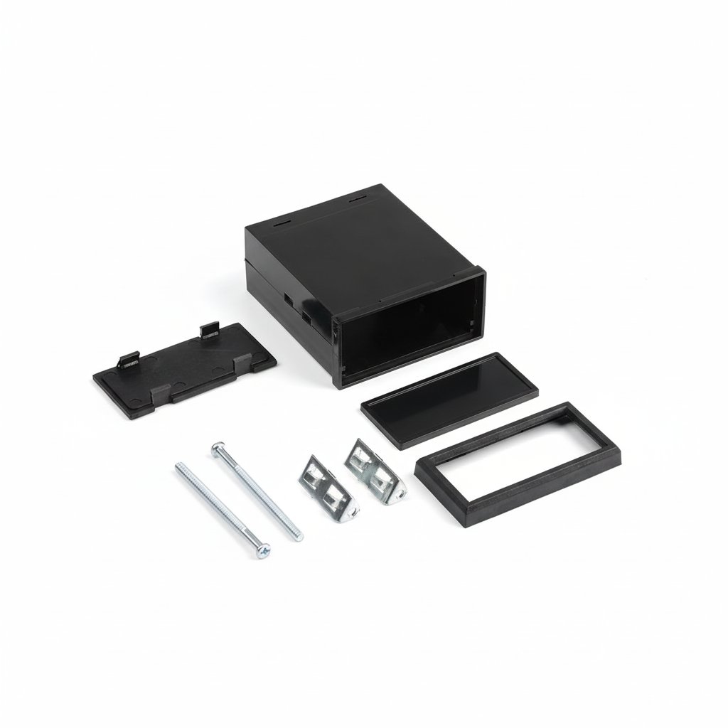 Корпусът на панела DIN PT-130 е изработен от висококачествена ABS пластмаса и е с размери 36 mm x 72 mm x 80 mm. Предлага се в светлосиво или черно и се състои от корпус, панел и странични скоби за лесен монтаж. За опции за персонализиране или подробности за количеството, моля, свържете се с нашия екип за международни продажби.