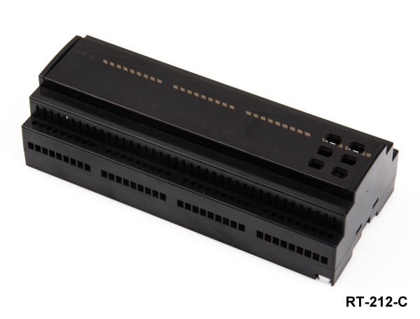 Корпусът RT-212 Din Rail е универсално и надеждно решение за електрически и електронни устройства. Изработен от материал UL94-V0, той предлага изключителна издръжливост и надеждност. Със своите компактни размери от 212 mm x 90 mm x 59 mm той е съвместим с дванадесет модула и има 5 различни варианта на корпуса, свързани с крайните изходи. Опциите за цвят на панела включват прозрачен и опушен и могат да бъдат персонализирани, за да отговарят на вашите дизайнерски нужди. Идеален за времеви релета, автоматизация, IOT, тестване и измерване, интелигентен дом и KNX системи, RT-212 Din Rail корпус осигурява сигурна и защитена среда за вашите устройства.
