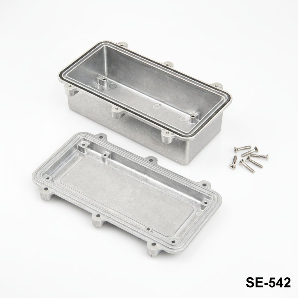 Естественото алуминиево покритие на този корпус може да бъде прахово боядисано във всеки цвят в зависимост от количеството. За информация относно подробностите за количеството и възможностите за персонализиране, моля, свържете се с нашия екип за международни продажби. SE-542 разполага с двойни канали за уплътнения, като единият осигурява водоустойчивост, а другият е уплътнение за ЕМИ. Имайте предвид, че уплътнението за ЕМИ трябва да се поръча отделно.