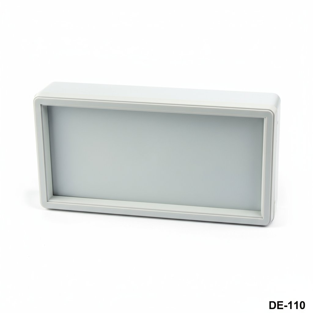 8698651141603DE-110 ist ein Kunststoffgehäuse, das für Anzeigezwecke verwendet wird. Das verwendete Material ist ABS-UL94-V0. Die Plexiglasscheiben sind wahlweise glänzend, mattiert, rot oder rauchfarben.