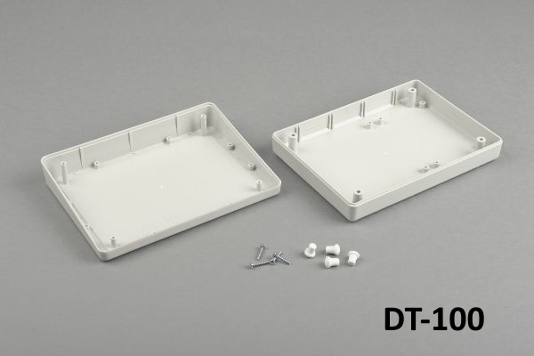 Das DT-100 Sloped Desktop Enclosure ist eine elegante und professionelle Option für elektronische Anwendungen, die aus ABS-UL94-HB-Material und einer abgeschrägten Frontplatte besteht.