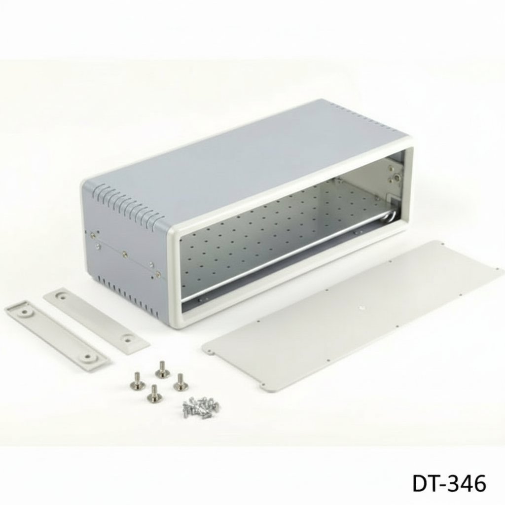 Mit den Maßen 350mm x 159mm x 115mm ist das DT-346 kompakt und dennoch robust. Die hellgraue Farbe verleiht ihm ein elegantes und professionelles Aussehen. Die Kombination der verwendeten Materialien sorgt dafür, dass es sowohl stoßfest als auch hitzebeständig ist, so dass es sich für den Einsatz in einer Vielzahl von Umgebungen eignet. Das Blech bietet außerdem zusätzliche Abschirmungseigenschaften für empfindliche elektronische Komponenten.