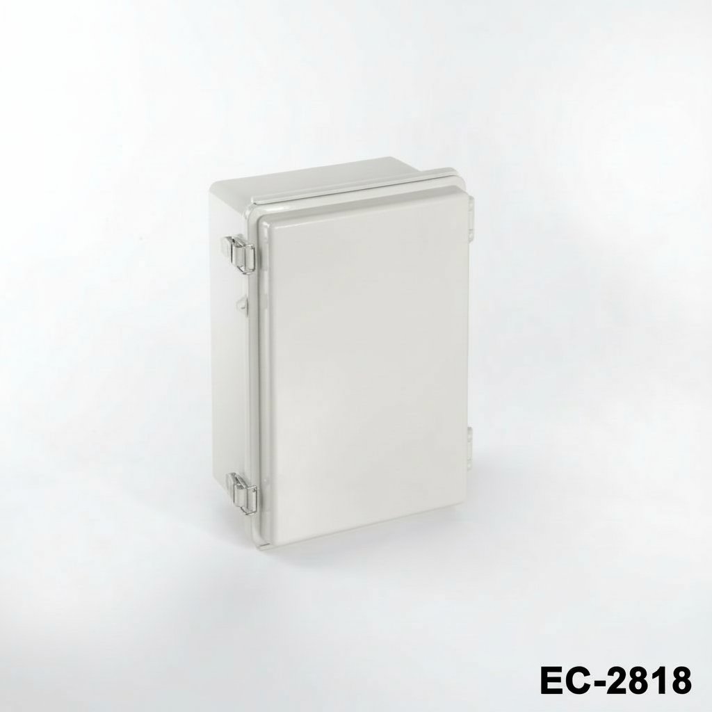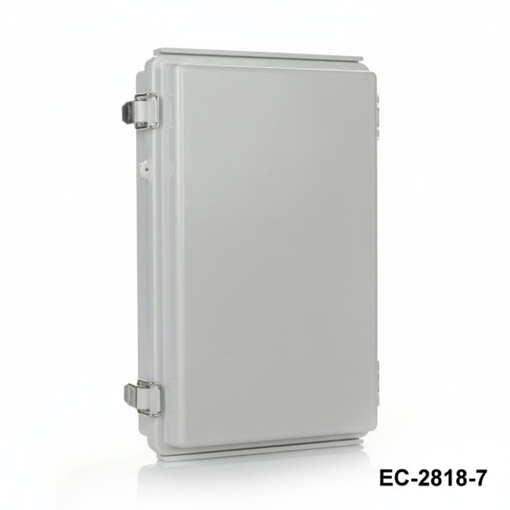 EC-2818 ist ein aufklappbares Kunststoffgehäuse mit IP67-Zertifikat. Diese Schränke können im Freien für verschiedene elektrische Anwendungen eingesetzt werden. Die TPE-Dichtung sorgt für Widerstandsfähigkeit gegen Wasser und Staub. Das Lagermaterial für dieses Produkt ist stoßfestes ABS. ASA ist eine weitere empfohlene Option für schwere Anwendungen. Ein weiteres optionales Angebot ist ein durchsichtiger Deckel aus PC (Polycarbonat). Die Montageplatte aus 1 mm verzinktem Stahl ermöglicht die einfache Montage Ihrer Komponenten im Inneren des Gehäuses. Die Gehäuse sind durch die Edelstahlverschlüsse gut geschützt. Weitere optionale Zubehörteile sind Wandmontagesätze aus Aluminium und Kunststoff, Mastmontagesätze und Innentürsets. CNC-Bearbeitung und UV-Druck sind wie bei allen Altinkaya-Produkten möglich.