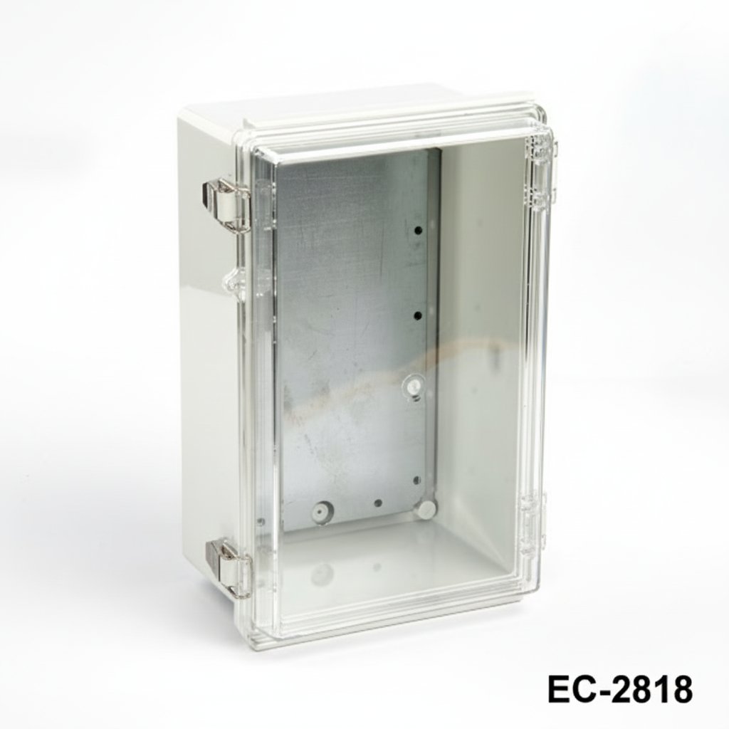 Το EC-2818 είναι ένα αρθρωτό πλαστικό περίβλημα με πιστοποιητικό IP67. Αυτά τα ερμάρια μπορούν να χρησιμοποιηθούν σε εξωτερικούς χώρους για διάφορες ηλεκτρικές εφαρμογές. Το παρέμβυσμα TPE εξασφαλίζει ανθεκτικότητα έναντι του νερού και της σκόνης. Το υλικό αποθέματος για αυτό το προϊόν είναι αντικραδασμικό ABS. Το ASA είναι μια άλλη συνιστώμενη επιλογή για εφαρμογές βαρέως τύπου. Μια άλλη προαιρετική προσφορά είναι ένα διαφανές καπάκι με υλικό PC (πολυκαρβονικό). Η πλάκα τοποθέτησης από γαλβανισμένο χάλυβα 1 mm παρέχει εύκολη τοποθέτηση των εξαρτημάτων σας στο εσωτερικό του περιβλήματος. Οι θήκες προστατεύονται καλά με τα μάνταλα από ανοξείδωτο χάλυβα. Άλλα προαιρετικά σχετικά εξαρτήματα είναι κιτ τοποθέτησης σε τοίχο από αλουμίνιο και πλαστικό, κιτ τοποθέτησης σε στύλο, σετ εσωτερικής πόρτας. Διατίθενται προσαρμογές με μηχανική κατεργασία CNC και εκτύπωση UV, όπως για όλα τα προϊόντα της Altinkaya.