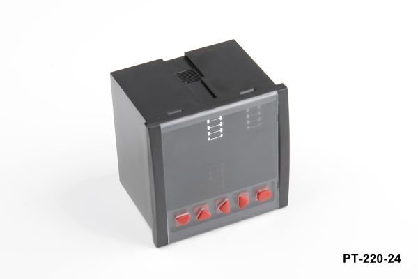 Το περίβλημα πίνακα PT-220-24 DIN είναι κατασκευασμένο από πλαστικό ABS υψηλής ποιότητας σε ανοιχτό γκρι ή μαύρο χρώμα και έχει διαστάσεις 96 mm x 96 mm x 76 mm. Διατίθεται με σώμα, πλαίσιο, πίνακα και πλευρικούς σφιγκτήρες για εύκολη τοποθέτηση. Επικοινωνήστε με την ομάδα διεθνών πωλήσεων για περισσότερες πληροφορίες σχετικά με την προσαρμογή και τις λεπτομέρειες ποσότητας.