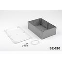 8698651112368La SE-260 es una caja de alta resistencia con certificado IP67. Sus características de impermeabilidad y resistencia al polvo permiten su uso en aplicaciones exteriores. La personalización mediante mecanizado CNC, impresión UV y marcado láser está disponible para este producto. El producto se fabrica con material ABS. La tapa transparente con material PC es una opción disponible.