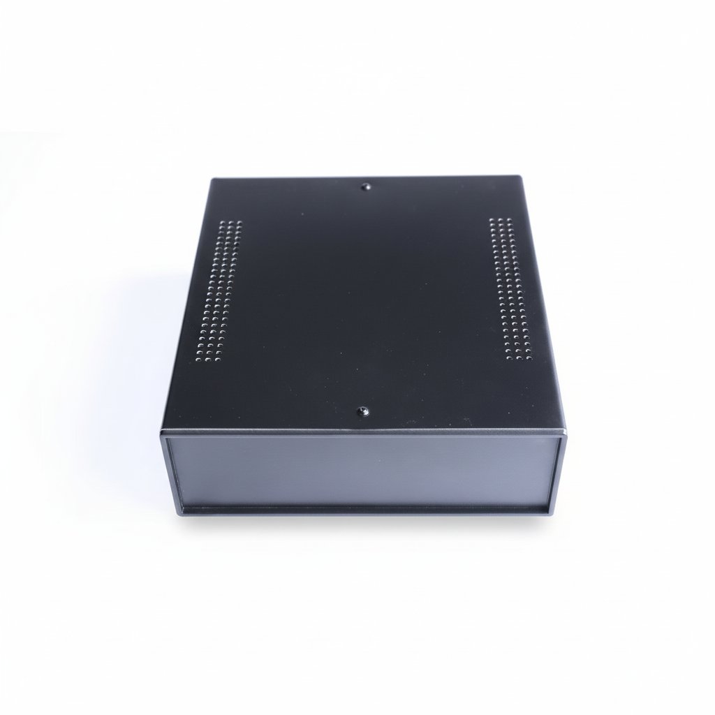 Con unas medidas de 228 mm x B x 76 mm, esta caja incluye una parte inferior y una base, así como paneles en ambos lados para facilitar el acceso a sus dispositivos electrónicos.