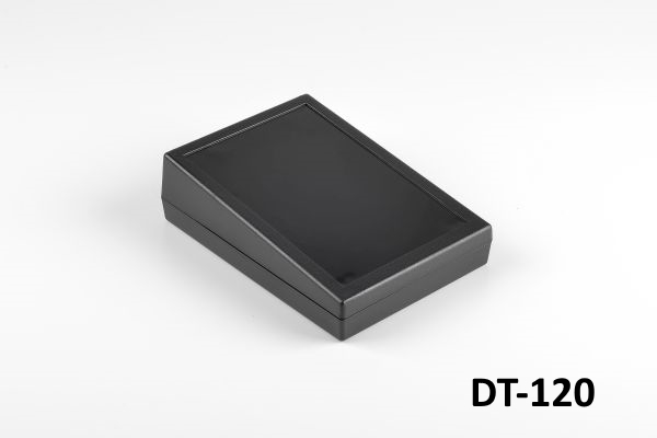 La caja de sobremesa inclinada DT-120 es una opción elegante y profesional para aplicaciones electrónicas fabricada con material ABS-UL94-HB y panel frontal inclinado.