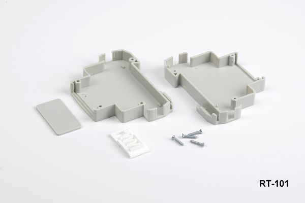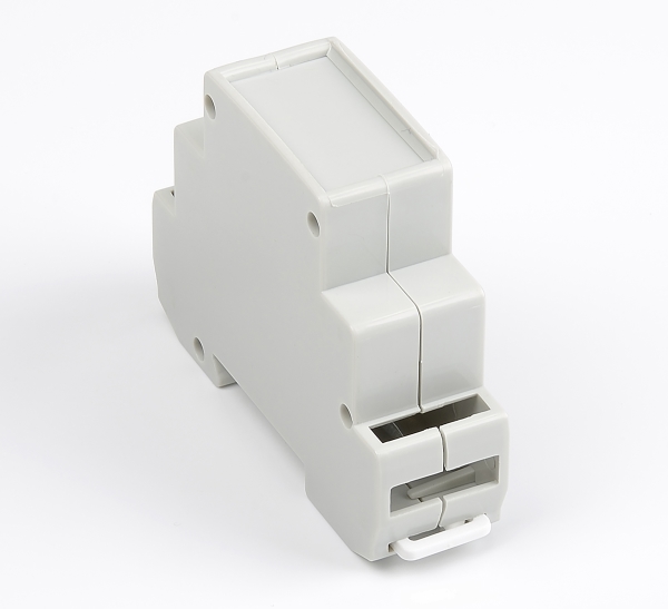 La caja para carril DIN RT-101 es una solución compacta y duradera fabricada con material UL94-V0 de alta calidad y disponible en color gris claro, diseñada para proteger dispositivos eléctricos y electrónicos en diversas aplicaciones, como relés temporizados, automatización, IoT, pruebas y mediciones, hogar inteligente y KNX.