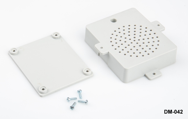 La caja de montaje en pared DM-042 es la solución perfecta para sus aplicaciones de sensores, sistemas IoT, dispositivos de control y medición y dispositivos de seguimiento. Fabricada en material ABS-UL94-HB duradero, esta caja tiene un elegante color gris claro y negro y mide 90 mm x 74 mm x 22,7 mm.
