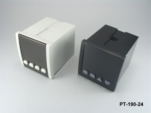 La caja para panel DIN PT-190-24 está fabricada en plástico ABS de alta calidad en color gris claro o negro y mide 72 mm x 72 mm x 85 mm. Se suministra con cuerpo, marco, panel y abrazaderas laterales para facilitar el montaje. Póngase en contacto con nuestro equipo de ventas internacionales para obtener más información sobre los detalles de personalización y cantidad.