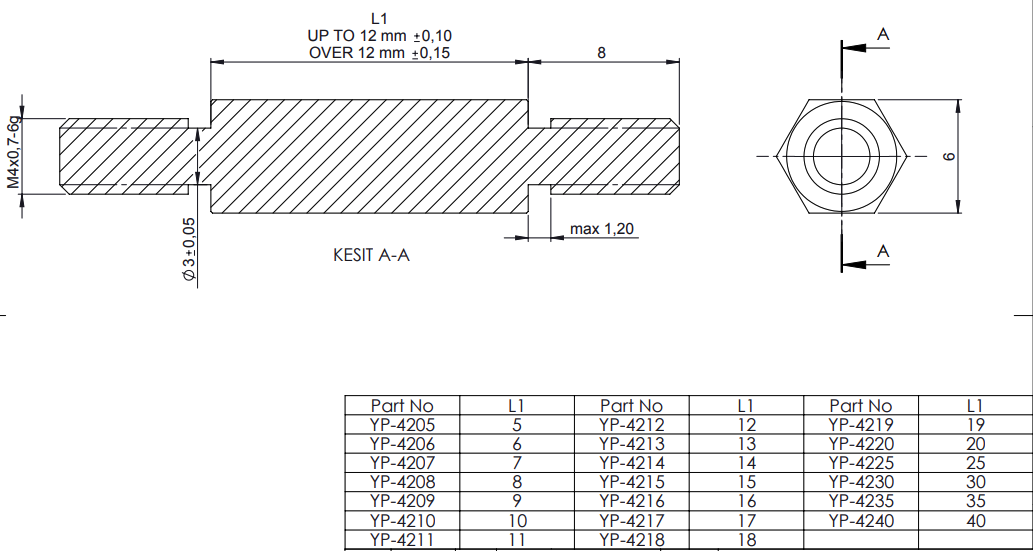 Separador hexagonal de latón YP-4200 - Macho M4 × Macho M4