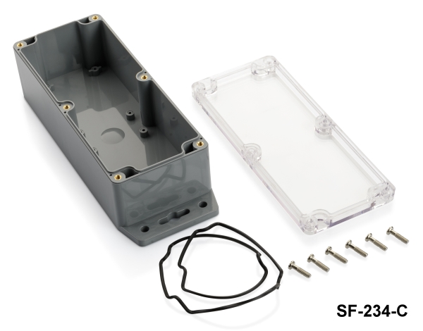 SF-232, IP67 sertifikasına sahip montaj ayaklı contalı bir kutudur. Su geçirmez ve toz geçirmez özellikleri ile dış mekan uygulamalarına uygundur