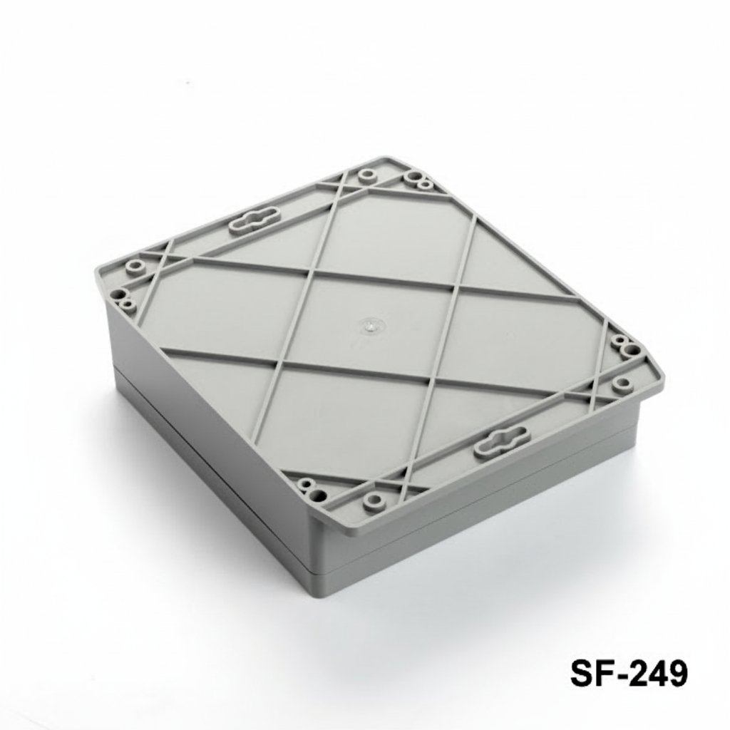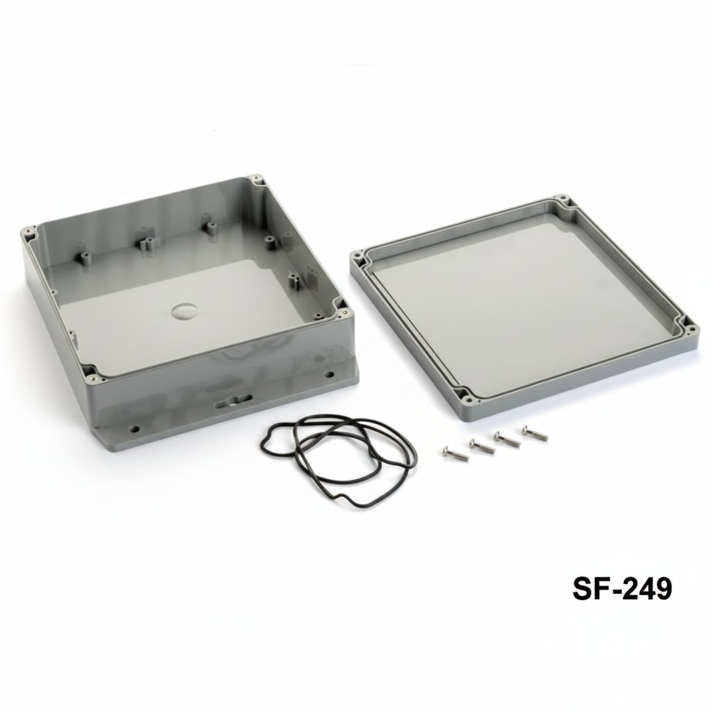 SF-249, IP67 sertifikasına sahip montaj ayaklı contalı bir kutudur. Su geçirmez ve toz geçirmez özellikleri ile dış mekan uygulamalarına uygundur.