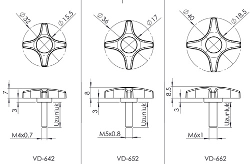 Taille du filet M4x0,7, M5x0,8, M6x1