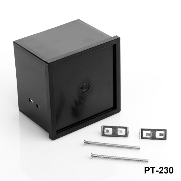 Le boîtier des panneaux DIN PT-230 est fabriqué en plastique ABS de haute qualité, de couleur gris clair ou noire, et mesure 96 mm x 96 mm x 74 mm. Il est livré avec un corps, un cadre, un panneau et des pinces latérales pour faciliter le montage. Contactez notre équipe de vente internationale pour plus d'informations sur la personnalisation et les quantités.