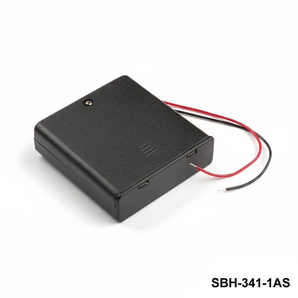 4 db UM-3 / AA méretű elemtartó (egymás mellett) (vezetékes) (W. kapcsoló) (fedett)