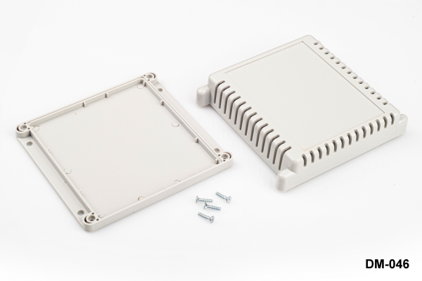 A DM-046 falra szerelhető ház tökéletes megoldás az Ön érzékelő alkalmazásaihoz, IoT-rendszereihez, vezérlő- és mérőeszközökhöz, valamint nyomkövető eszközökhöz. A tartós ABS-UL94-HB anyagból készült, elegáns világosszürke és fekete színű, 125,5 mm x 116 mm x 33 mm méretű ház.