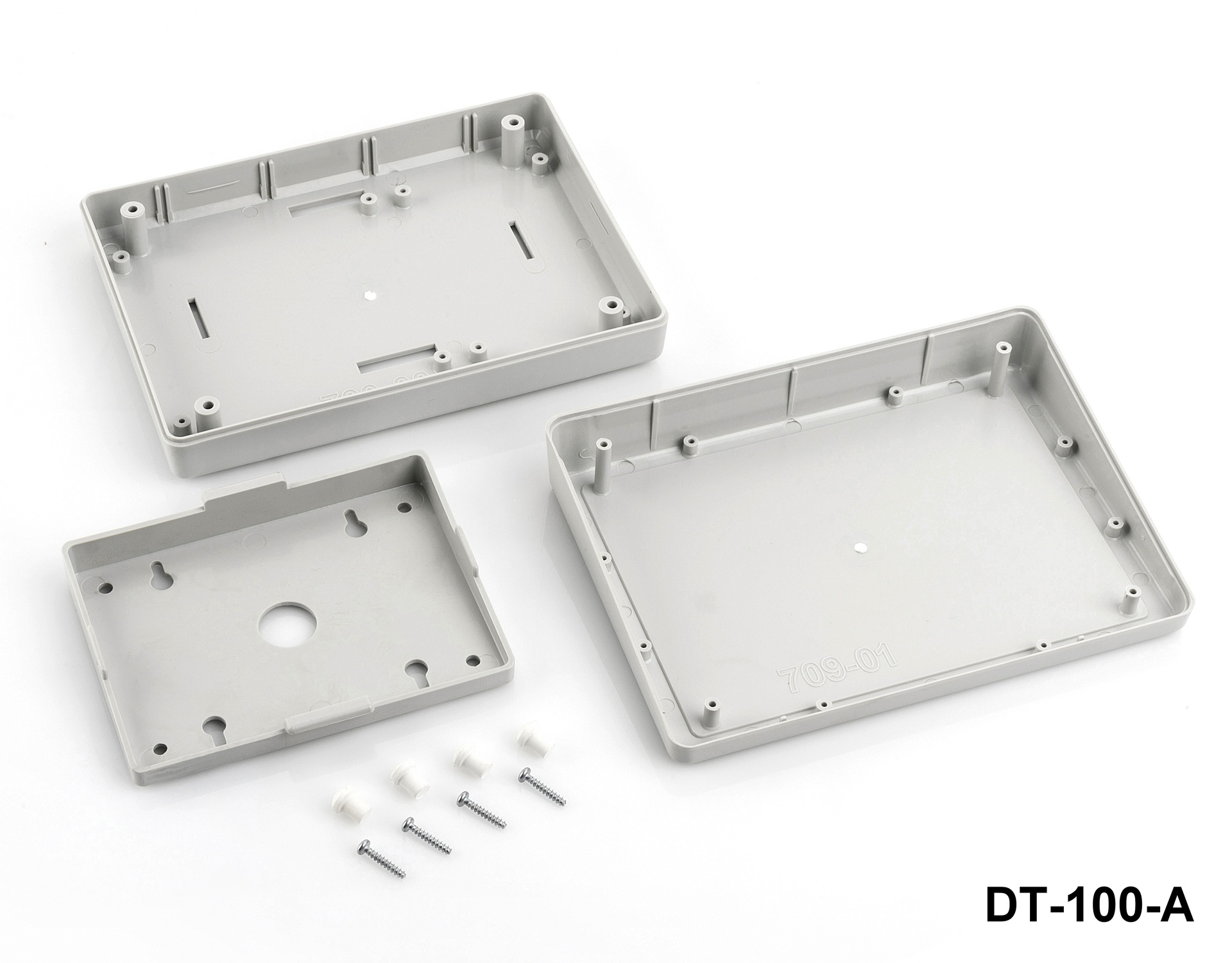 A DT-100 Sloped Desktop Enclosure egy elegáns és professzionális lehetőség az elektronikus alkalmazásokhoz, amely ABS-UL94-HB anyagból és ferde előlappal készül.