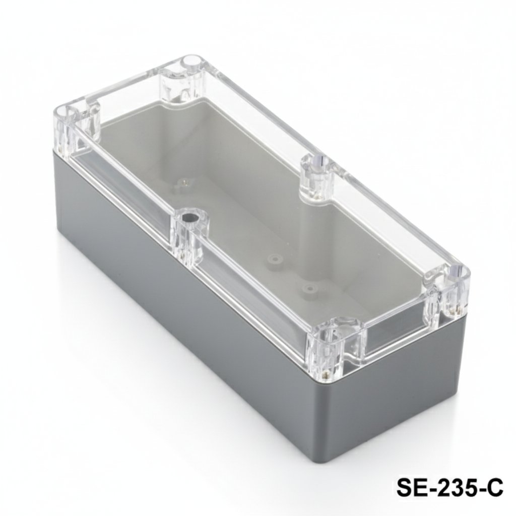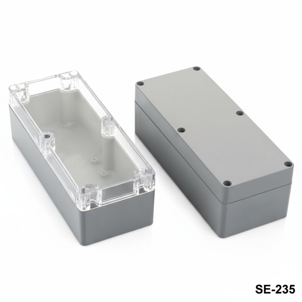 Az SE-235 IP67 műanyag zárt doboz egy tartós és sokoldalú doboz, amely számos víz- és porálló védelmet igénylő alkalmazáshoz alkalmas. Kiváló minőségű ABS alapanyagból készül. Az átlátszó fedél opció PC anyagból készül és opcionális. Az IP67-es minősítéssel ez a doboz védelmet nyújt a víz és a por ellen, így ideális kültéri használatra. Az SE-235 gyártható ASA anyagból is, amely ellenáll a napfénynek, és jobban megfelel a kültéri alkalmazásokhoz. Ezáltal ideális választás beágyazott rendszerekhez, távadókhoz, barométerekhez, gáz- és páratartalom-érzékelőkhöz, hőmérséklet-szabályozáshoz és mérési alkalmazásokhoz, amelyek magas szintű védelmet igényelnek.