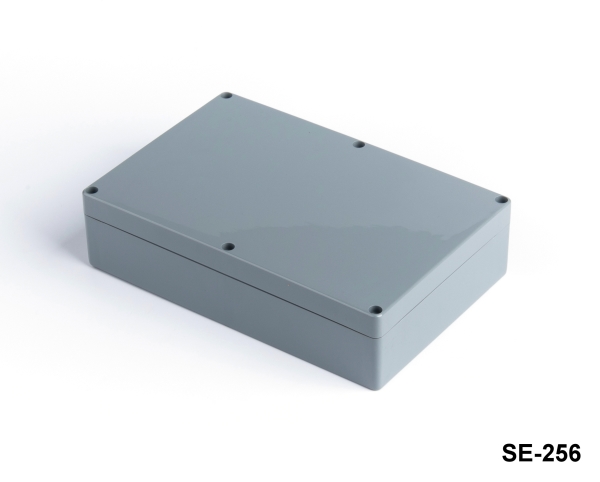 Az SE-256 egy IP67 tanúsítvánnyal rendelkező nagy teherbírású ház. Víz- és porálló tulajdonságai lehetővé teszik a kültéri alkalmazásokban való használatot. Ehhez a termékhez CNC megmunkálással, UV nyomtatással és lézeres jelöléssel történő testreszabás is elérhető. A termék ABS anyagból készül. A PC anyagból készült átlátszó fedél választható.