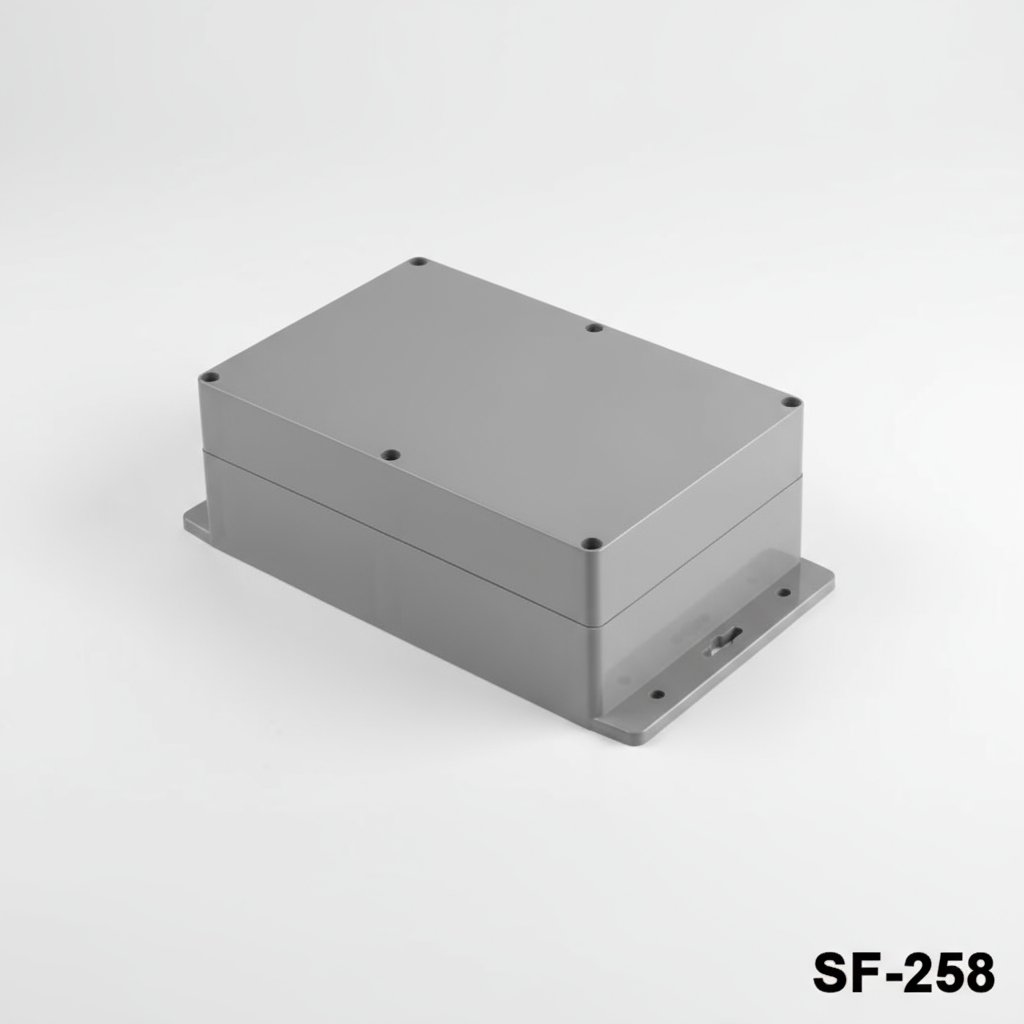 8698651321074Az SF-258 egy karimás, nagy teherbírású, IP67 tanúsítvánnyal rendelkező szekrény. Víz- és porálló tulajdonságai lehetővé teszik a kültéri alkalmazásokban való használatot. A csavarfuratokkal ellátott karimák könnyű szerelést biztosítanak a falhoz. A termékhez CNC megmunkálással, UV nyomtatással és lézeres jelöléssel történő testreszabás is elérhető. A termék ABS anyagból készül. A PC anyagból készült átlátszó fedél elérhető opció.