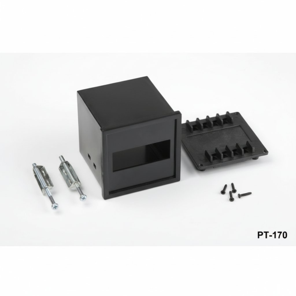 L'involucro del pannello DIN PT-170 è realizzato in plastica ABS di alta qualità e misura 72 mm x 72 mm x 70 mm. Disponibile in grigio chiaro o nero, è dotato di corpo, pannello e morsetti laterali per facilitare il montaggio. Per opzioni di personalizzazione o dettagli sulla quantità, contatti il nostro team di vendita internazionale.