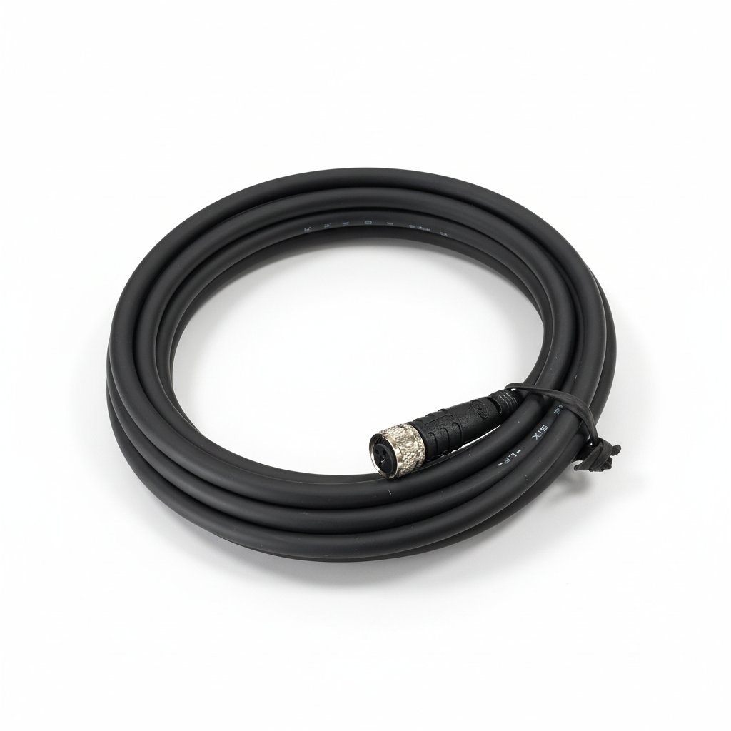 M8 kablo ile 3 pinli fiş tipi dişi konnektör. Alüminyum alaşımlı pin uzunluğu 3 mm'dir. IP-67 sınıfı su geçirmez.