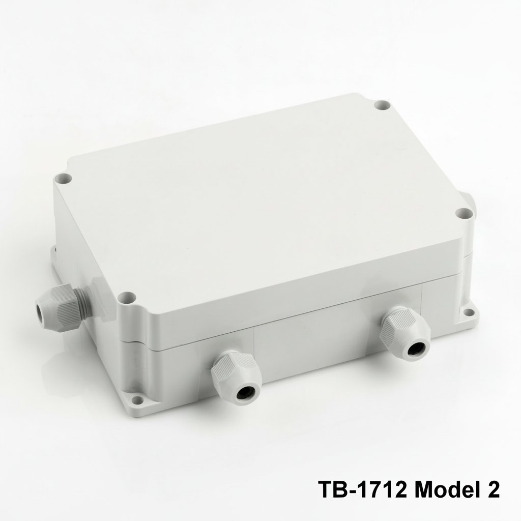 TB-1712 è un involucro IP67 con pressacavi, montabile a parete grazie alle sue orecchie di montaggio. Il prodotto è realizzato in materiale ABS V0, per il grado di non infiammabilità. È inclusa una guarnizione continua per garantire il grado IP67. I pressacavi sono stampati e supportano la caratteristica IP67.