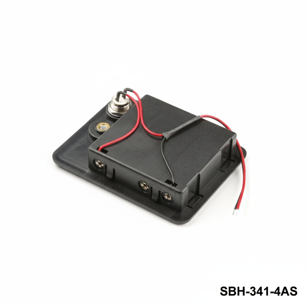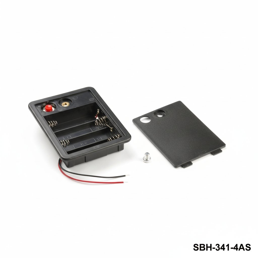 4個 UM-3 / AAサイズバッテリーホルダー(サイドバイサイド)(有線)(ボタンなし)(カバー付き)