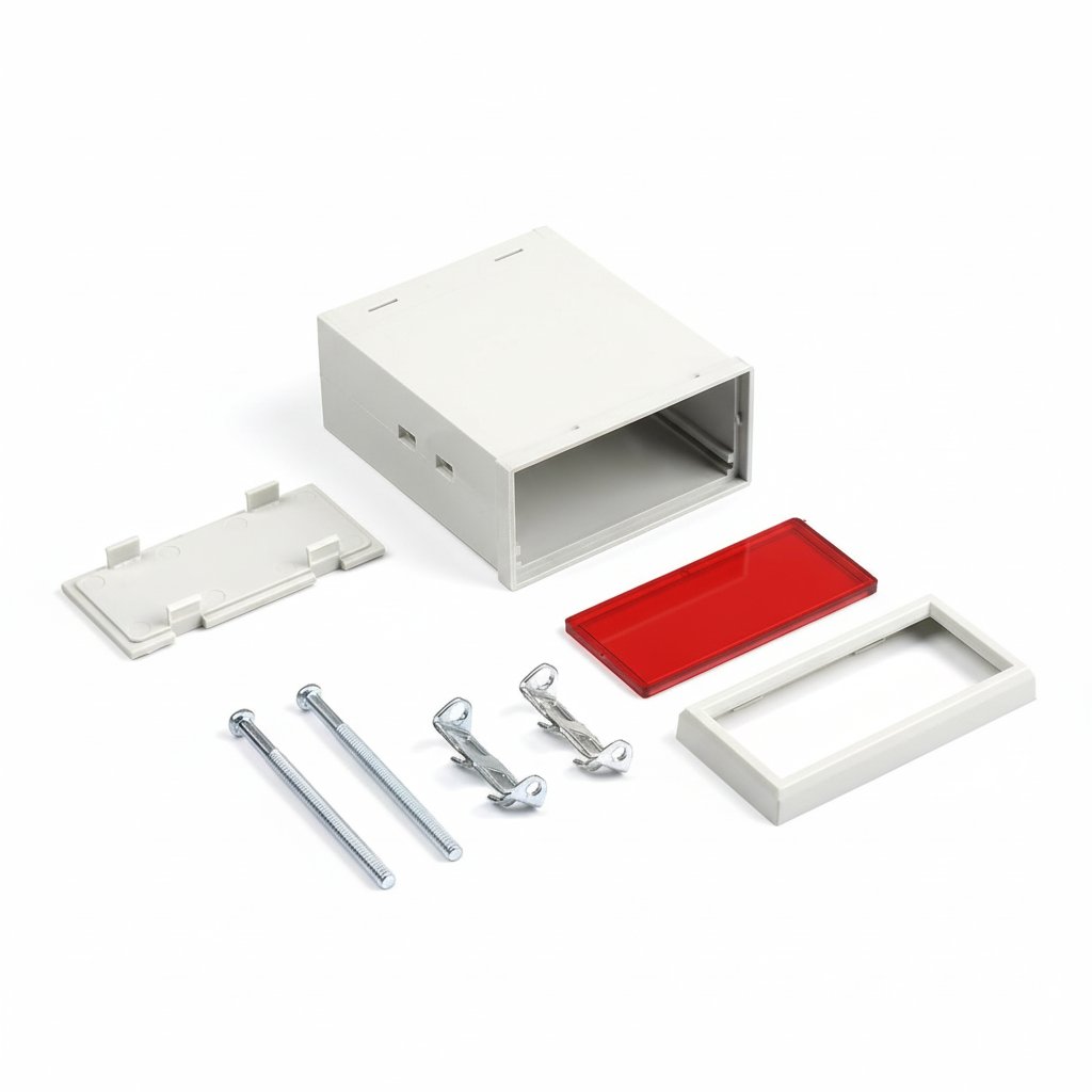 PT-130 DINパネルエンクロージャは、高品質のABSプラスチック製で、サイズは36 mm x 72 mm x 80 mmです。ライトグレーとブラックの2色があり、本体、パネル、サイドクランプで簡単に取り付けられます。カスタマイズオプションや数量詳細については、国際営業チームまでお問い合わせください。