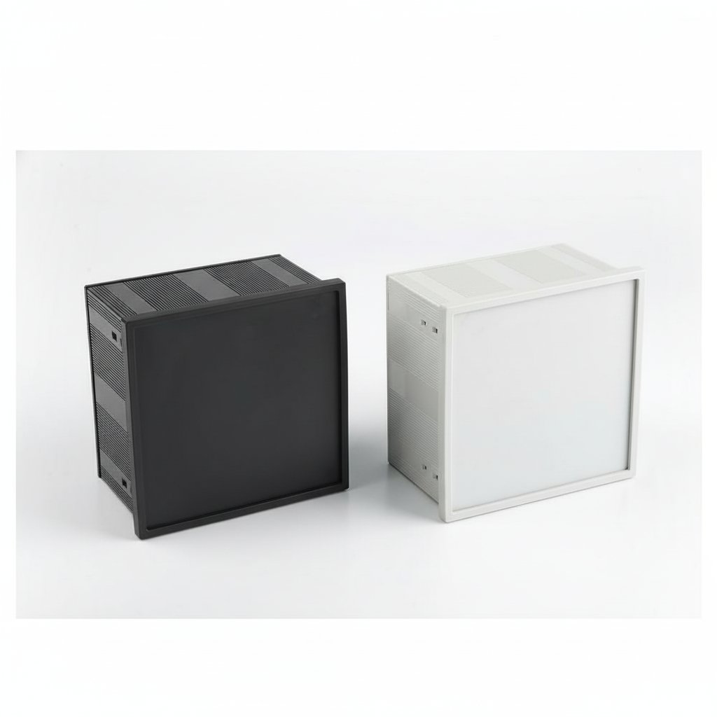 PT-270 DINパネルエンクロージャは、ライトグレーまたはブラックの高品質ABSプラスチック製で、サイズは144 mm x 144 mm x 85 mmです。本体、フレーム、パネル、サイドクランプが付属しており、簡単に取り付けることができます。カスタマイズや数量の詳細については、国際営業チームまでお問い合わせください。