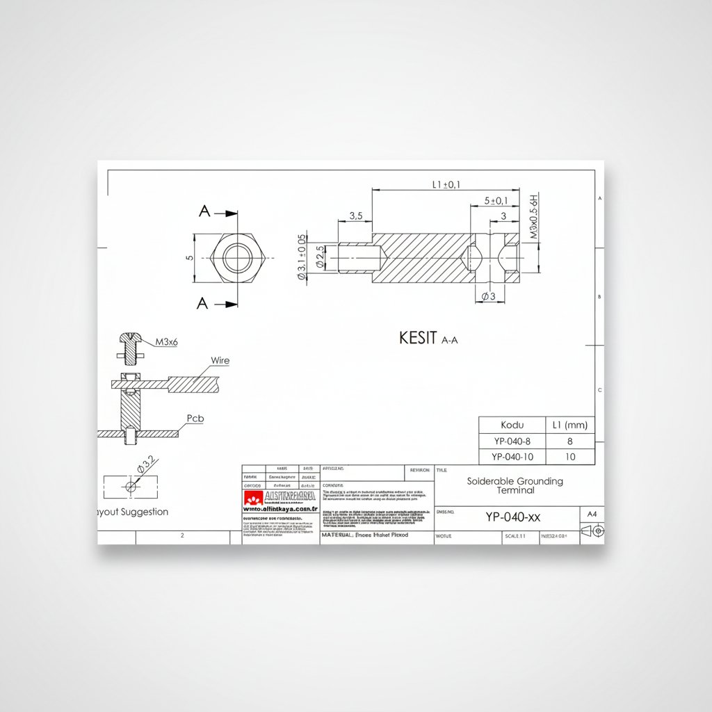 YP-040 はんだ付け可能な真鍮製アース端子 - オス M3 × メス M3