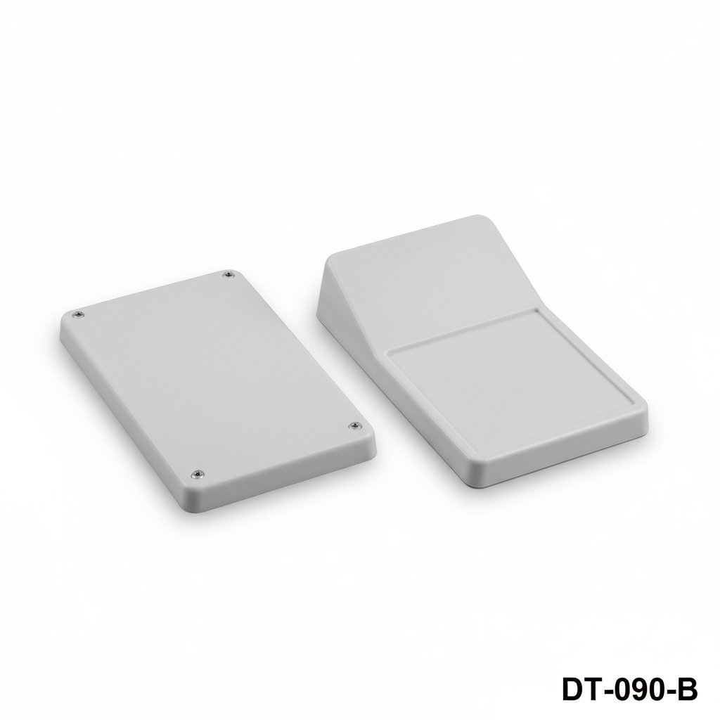 De DT-065 Schuine Desktop Behuizing is een slanke en professionele optie voor elektronische toepassingen gemaakt van ABS-UL94-HB materiaal met afmetingen van 150mm x 95mm x 49,5mm en een schuin voorpaneel.