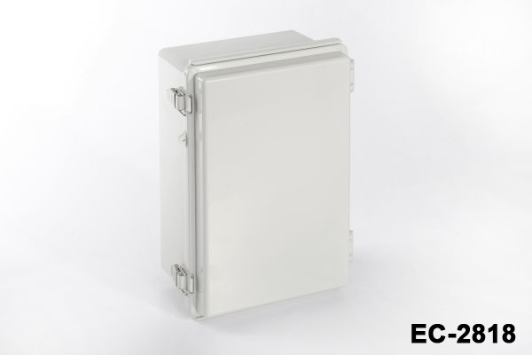 EC-2818 is een scharnierende kunststof behuizing met IP67-certificaat. Deze kasten kunnen buiten gebruikt worden voor verschillende elektrische toepassingen. De TPE-pakking zorgt ervoor dat ze bestand zijn tegen water en stof. Het standaardmateriaal voor dit product is schokbestendig ABS. ASA is een andere aanbevolen optie voor zware toepassingen. Een andere optionele optie is een doorzichtig deksel van PC-materiaal (polycarbonaat). Met de gegalvaniseerd stalen montageplaat van 1 mm kunt u uw componenten eenvoudig in de behuizing monteren. De behuizingen zijn goed beschermd met de roestvrijstalen vergrendelingen. Andere optionele gerelateerde accessoires zijn aluminium en kunststof wandmontagekits, paalmontagekits, binnendeursets. Zoals voor alle Altinkaya-producten zijn CNC-bewerking en UV-bedrukking op maat mogelijk.