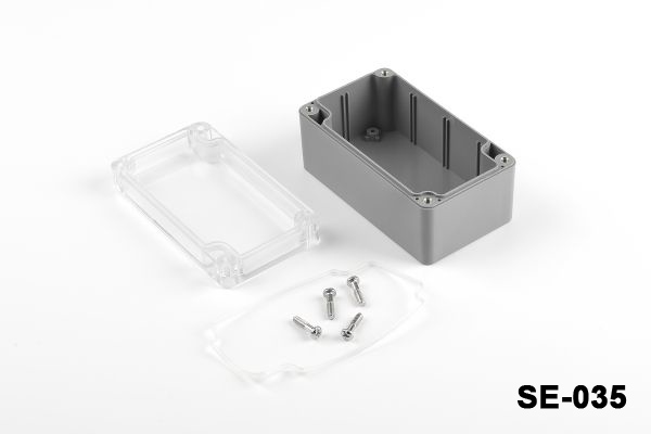 De SE-035 IP67 kunststof behuizing voor zware toepassingen is een duurzame en veelzijdige behuizing die geschikt is voor diverse toepassingen die een waterdichte en stofdichte bescherming nodig hebben. Deze behuizing is gemaakt van hoogwaardige ABS-, PC- en PC/ABS-materialen en wordt geleverd in een gestroomlijnde donkergrijze kleur met een transparant deksel. Met zijn IP67-classificatie biedt deze behuizing bescherming tegen water en stof, waardoor hij ideaal is voor gebruik buitenshuis.