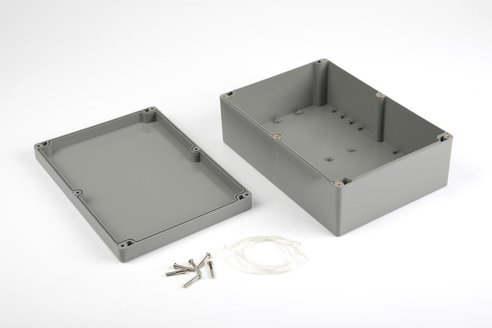 SE-264 is een behuizing voor zwaar gebruik met IP67-certificaat. Water- en stofdichte eigenschappen maken gebruik in buitentoepassingen mogelijk. Dit product kan worden aangepast door middel van CNC-bewerking, UV-bedrukking en lasermarkering. Het product is gemaakt van ABS-materiaal. Een doorzichtig deksel van PC-materiaal is als optie verkrijgbaar.