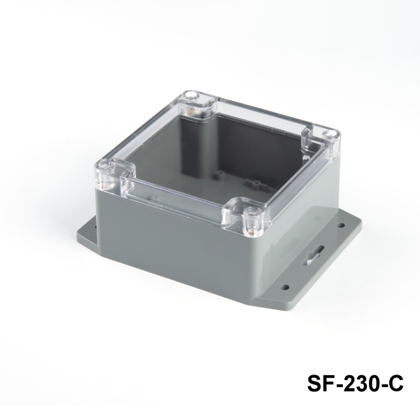 SF-230 is een geflensde behuizing voor zwaar gebruik met IP67-certificaat. Water- en stofdichte eigenschappen maken gebruik in buitentoepassingen mogelijk. Flenzen met schroefgaten zorgen voor eenvoudige montage aan de muur. Dit product kan worden aangepast door CNC-bewerking, UV-bedrukking en lasermarkering. Het product is gemaakt van ABS-materiaal. Een doorzichtig deksel van PC-materiaal is als optie verkrijgbaar.