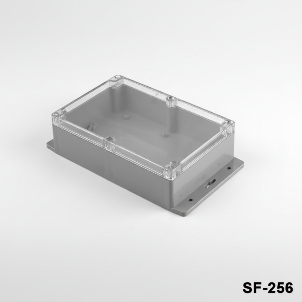 SF-256 is een geflensde behuizing voor zwaar gebruik met IP67-certificaat. Water- en stofdichte eigenschappen maken gebruik in buitentoepassingen mogelijk. Flenzen met schroefgaten zorgen voor eenvoudige montage aan de muur. Dit product kan worden aangepast door CNC-bewerking, UV-bedrukking en lasermarkering. Het product is gemaakt van ABS-materiaal. Een doorzichtig deksel van PC-materiaal is als optie verkrijgbaar.