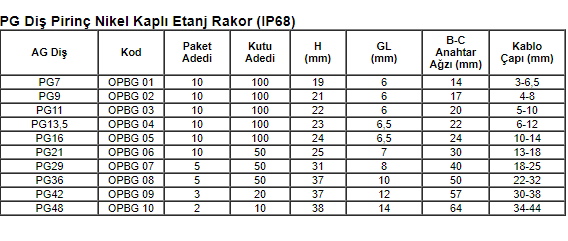 | Rozmiar gwintu | PG7, PG9, PG11, PG13,5, PG16, PG21, PG29, PG36, PG42, PG48, M12x1,5, M16x1,5, M20x1,5, M25x1,5, M32x1,5, M40x1,5, M50x1,5, M63x1,5 |