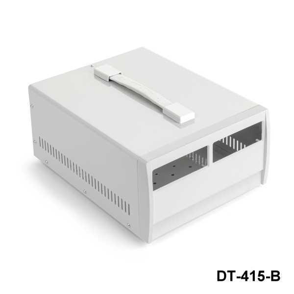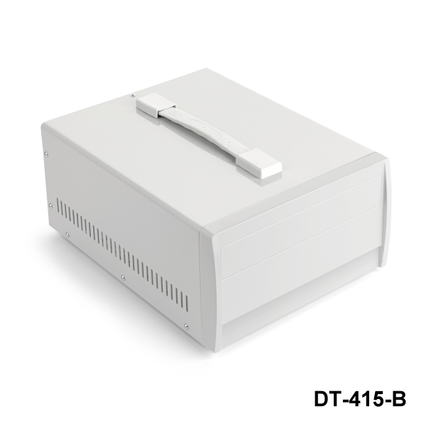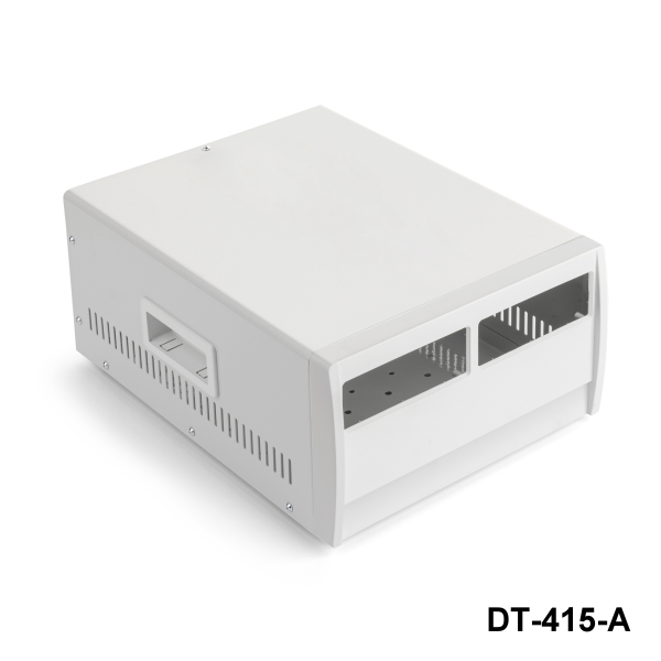 Mierząca 261 mm x 337 mm x 152 mm obudowa DT-415 jest kompaktowa, a jednocześnie wytrzymała. Jasnoszary kolor zapewnia elegancki i profesjonalny wygląd. Kombinacja zastosowanych materiałów zapewnia odporność na uderzenia i ciepło, dzięki czemu nadaje się do użytku w różnych środowiskach. Blacha zapewnia również dodatkowe właściwości ekranujące dla wrażliwych komponentów elektronicznych.